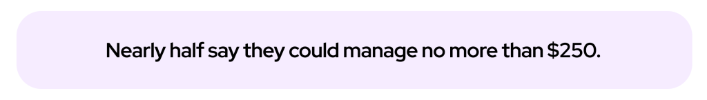 This deepening economic strain comes at a time when most Americans are already living paycheck to paycheck. Just 27% say they could handle an unexpected expense of more than $1,000 this month. The vast majority are unable to weather such an expense: