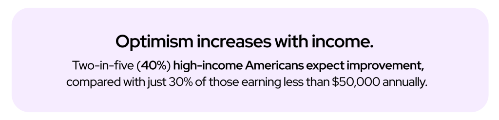 Still, even among lower-income households, optimism slightly outweighs pessimism, suggesting that while many feel bruised by the past year, a significant share is hopeful that their fortunes may improve.